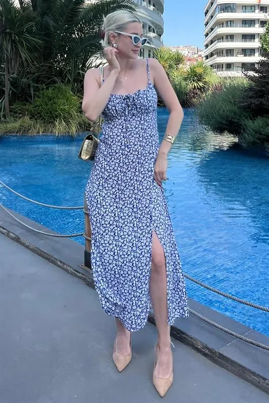 فستان ميدي بدون أكمام بياقة مربعة للنساء