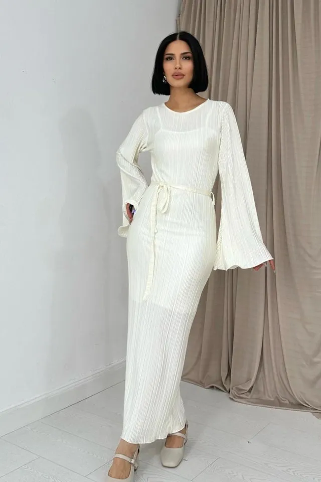 فستان كاجوال ميدي بأكمام قصيرة وياقة دائرية
