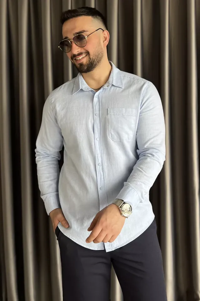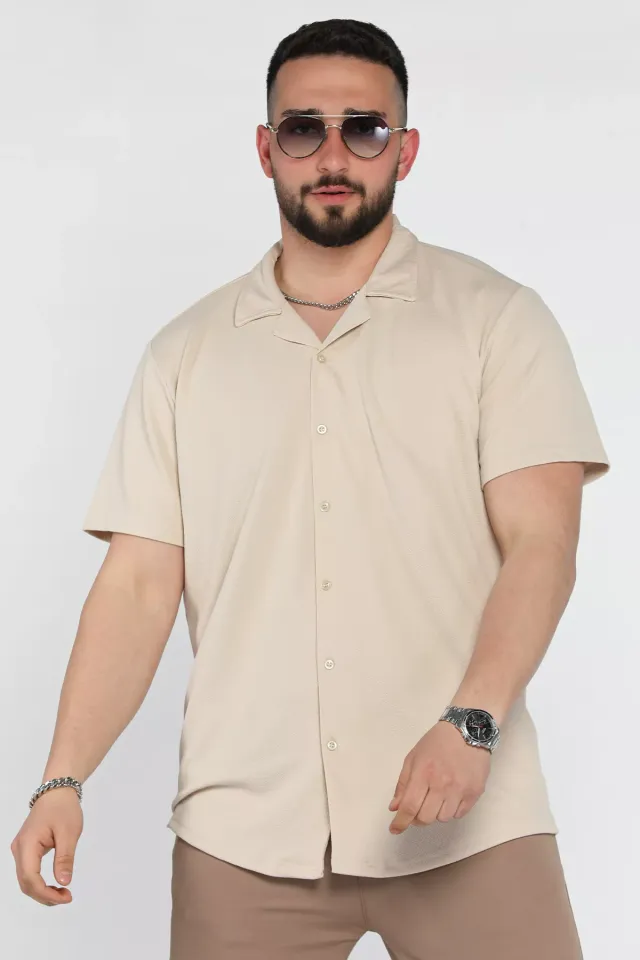 قميص رجالي مخطط بأكمام قصيرة وأزرار أمامية وقصة ضيقة