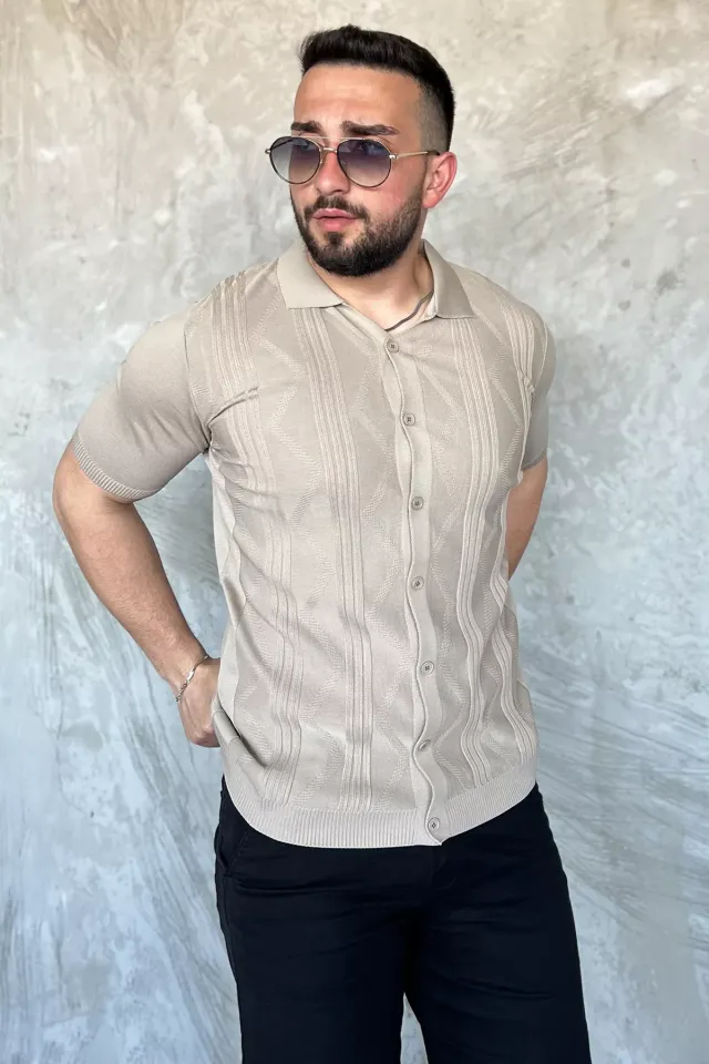 قميص منقوش بياقة قميص وأكمام قصيرة بقصة ضيقة للرجال