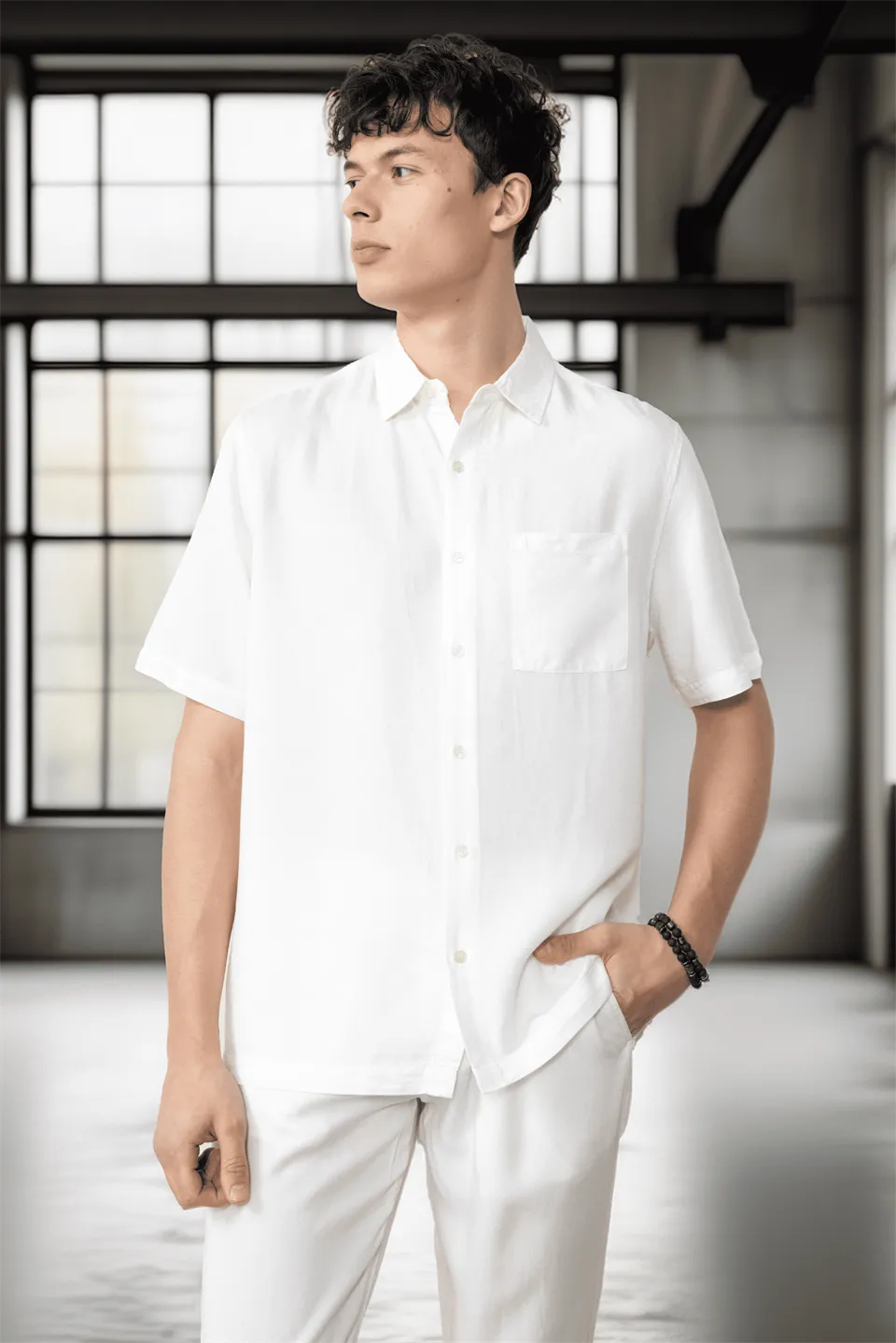 قميص رجالي كاجوال منقوش بقصة ضيقة وأكمام قصيرة