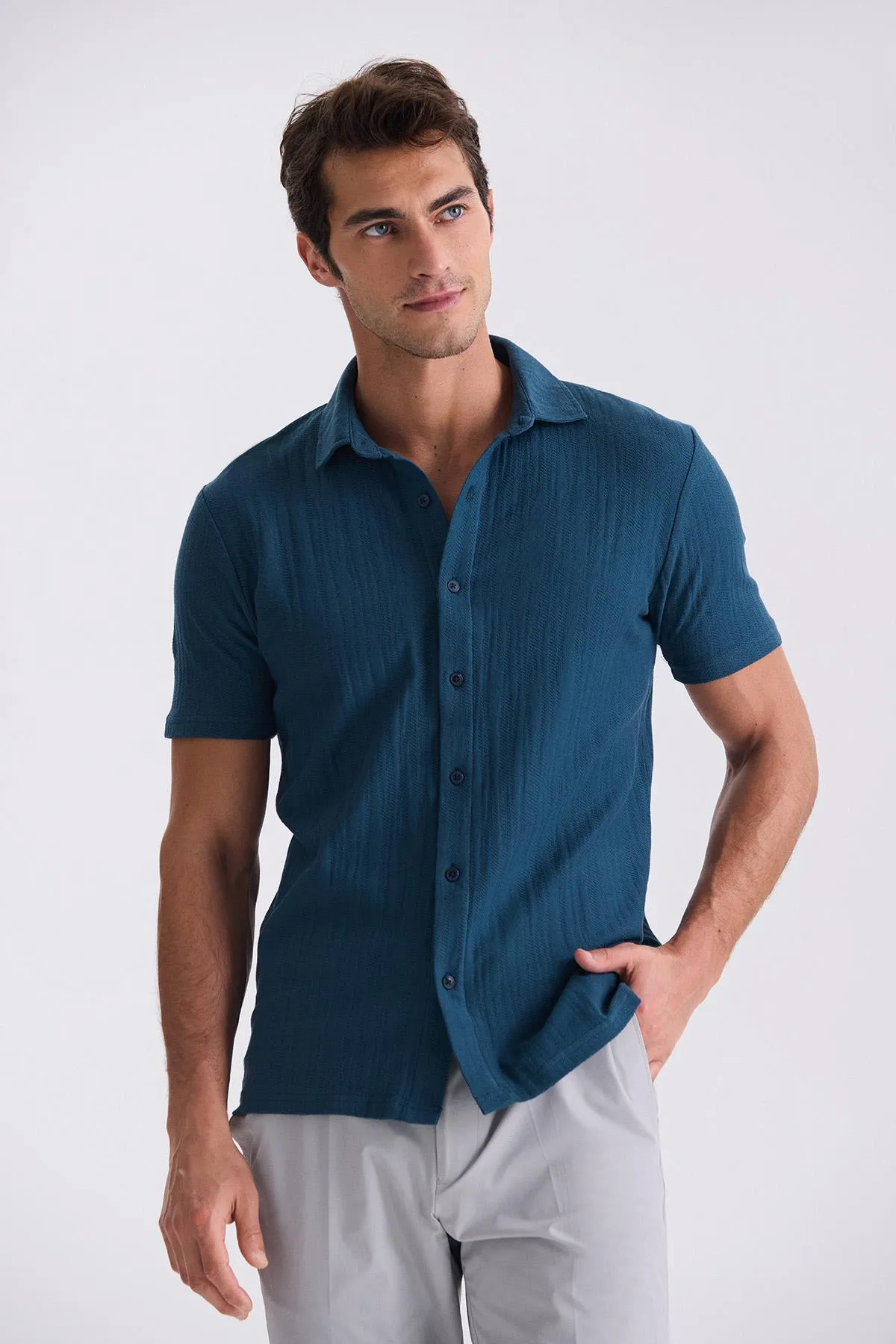قميص محبوك من القطن بقصّة ضيقة – ناعم، مريح، وقابل للتهوية