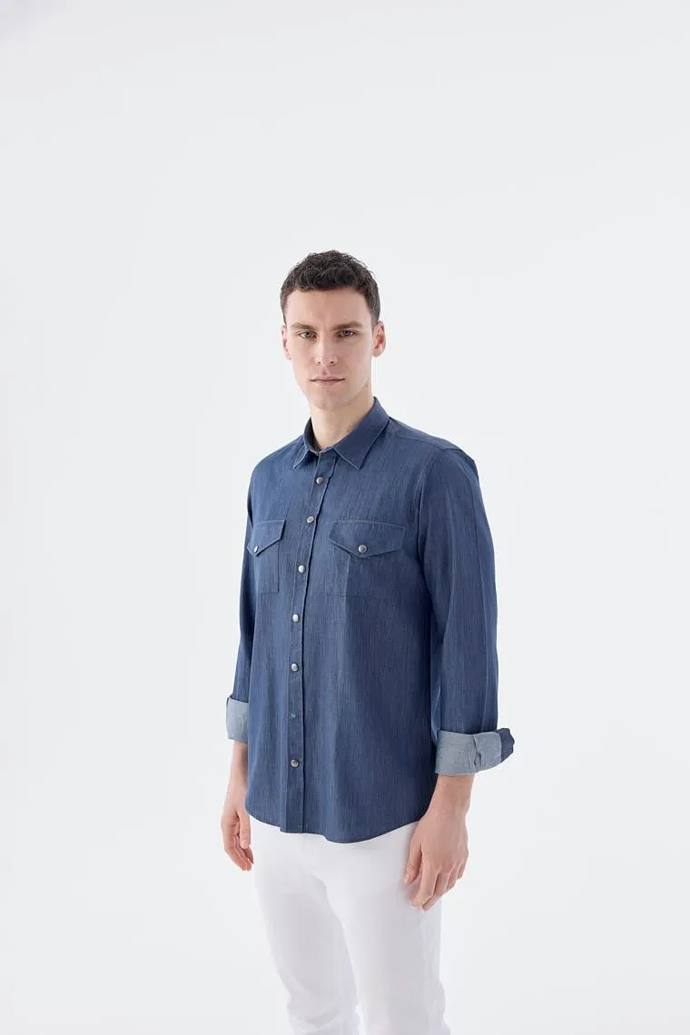 قميص رجالي أوفر سايز بتفاصيل جيب وياقة كلاسيكية