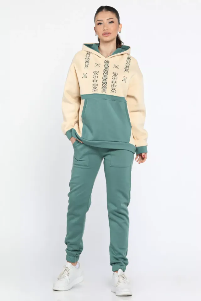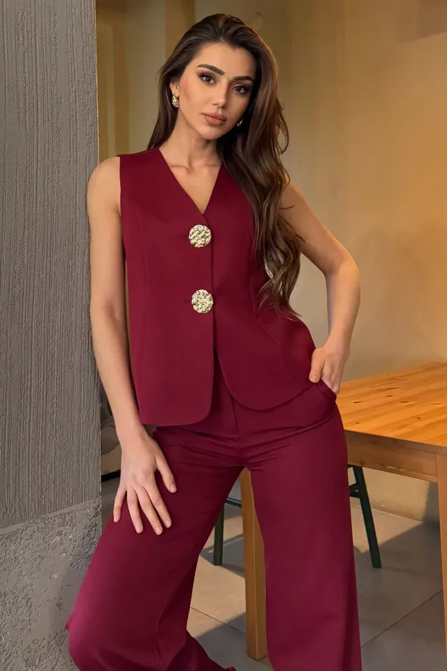 طقم سترة وبنطلون محبوك بأزرار أمامية غير متماثلة وياقة V للنساء