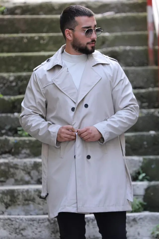 معطف رجالي موحد اللون بغطاء للرأس و أزرار كبس للإغلاق