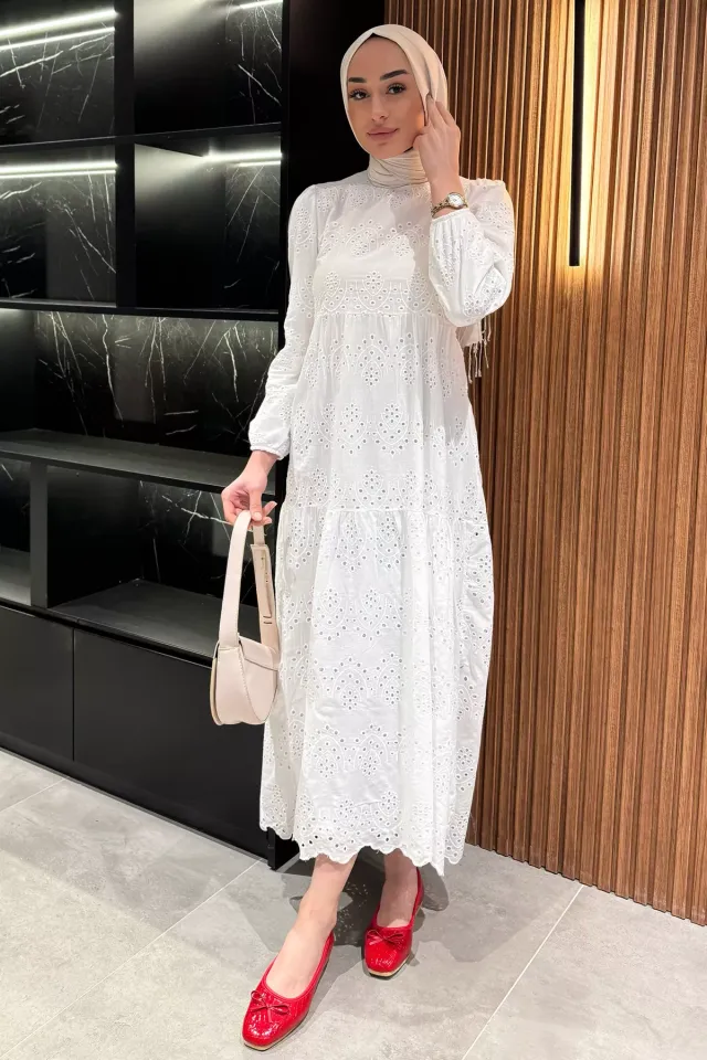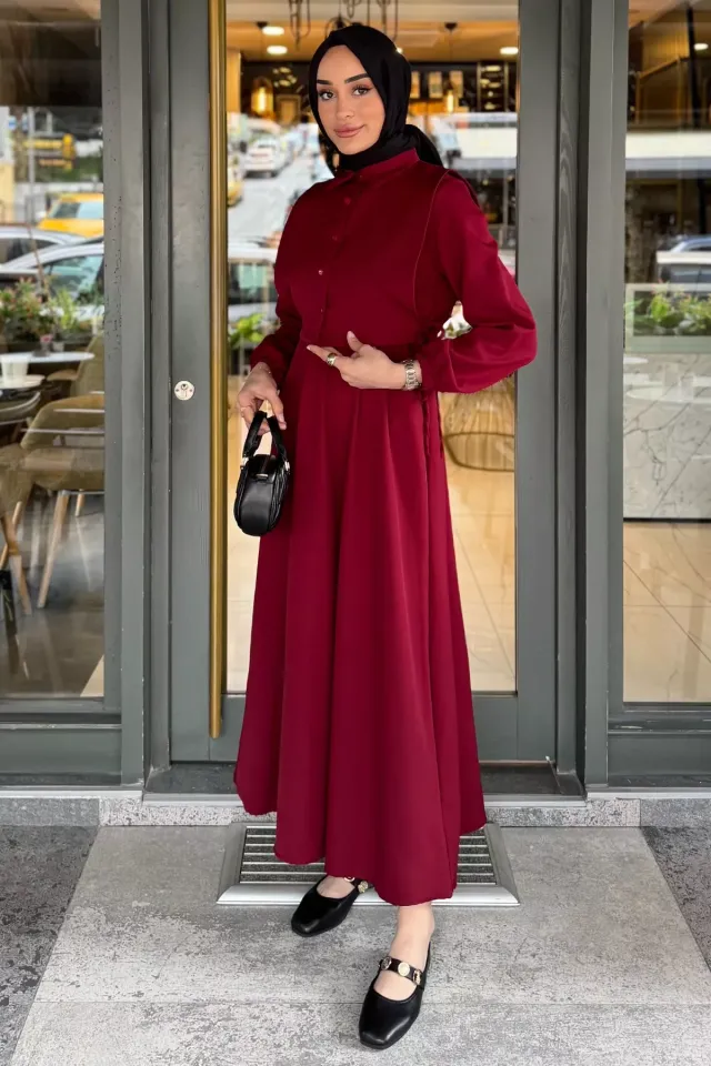 فستان مودست بأكمام طويلة وياقة مربوطة بتصميم واسع
