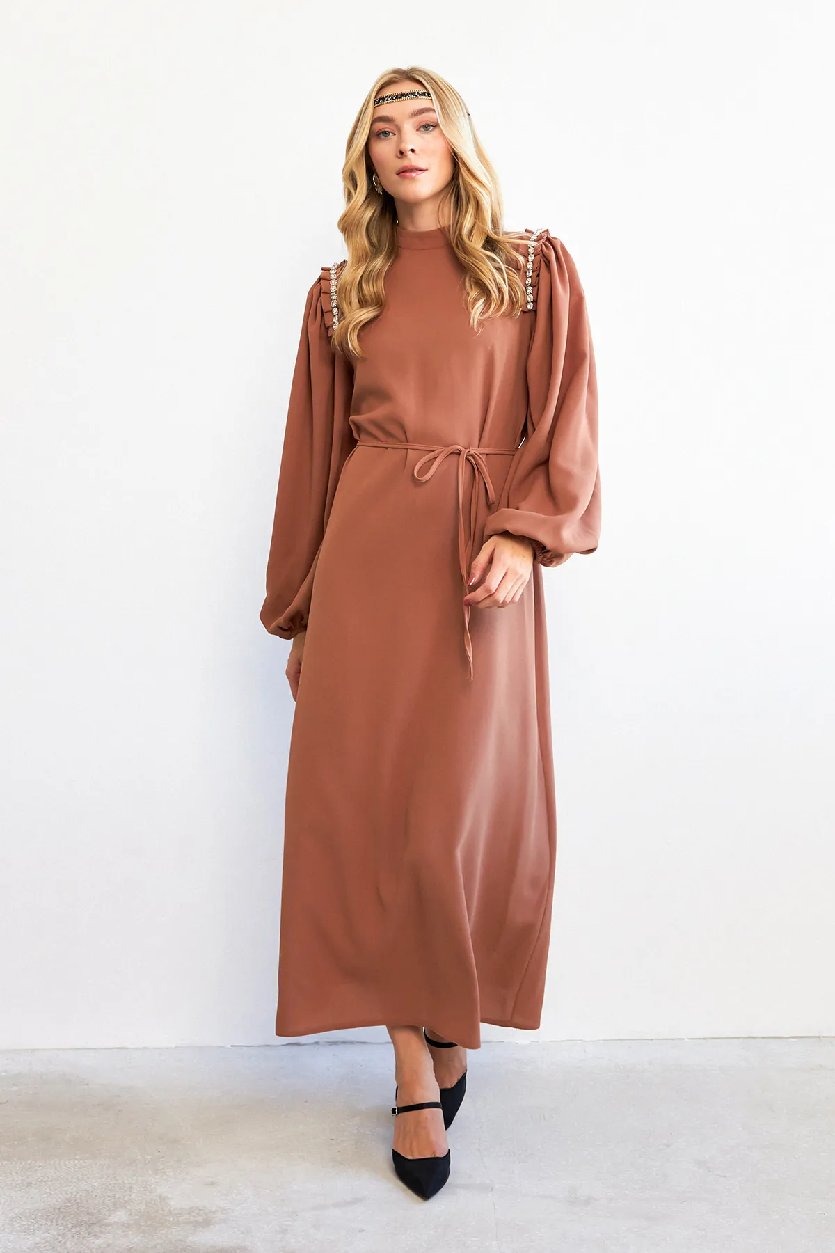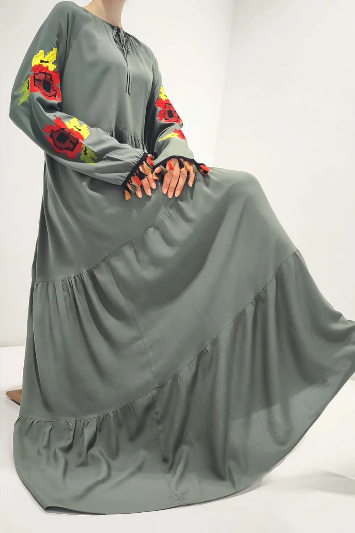 - نوع الأكمام : أكمام واسعة مزمومة من الاسفل