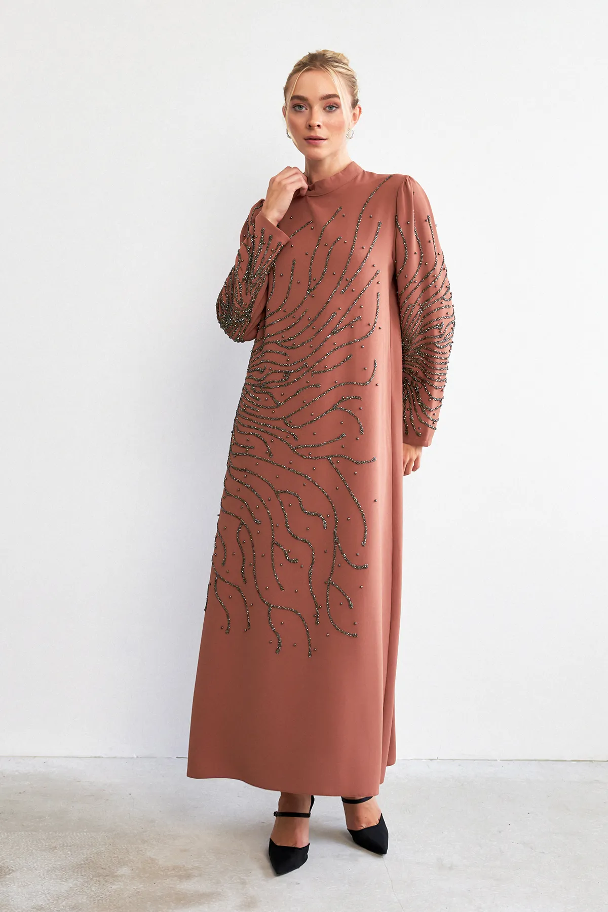 عباية ساتان بأكمام بالونية وياقة قائمة للنساء