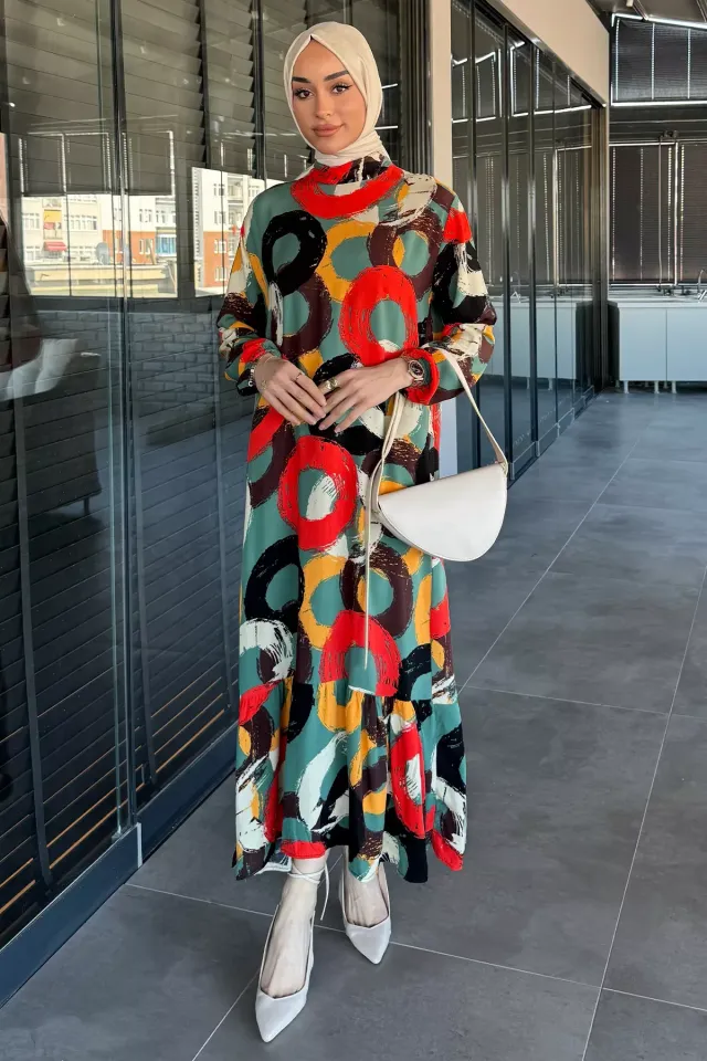 فستان كاجوال سادة بأكمام بالون وحزام