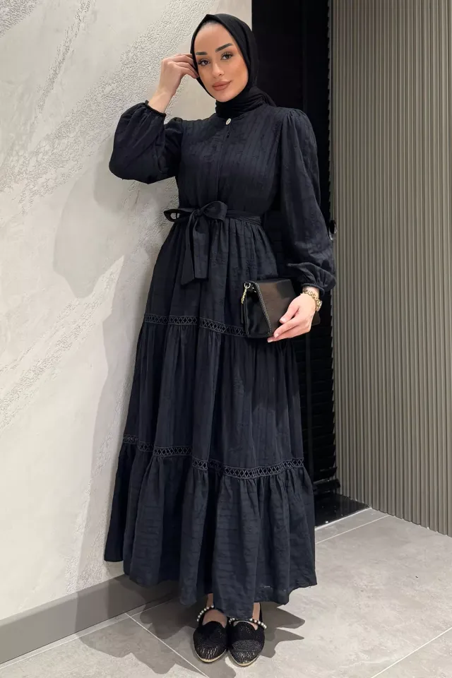 يحتوي المنتج على حزام قابل للإزالة مع رباط عند الخصر.