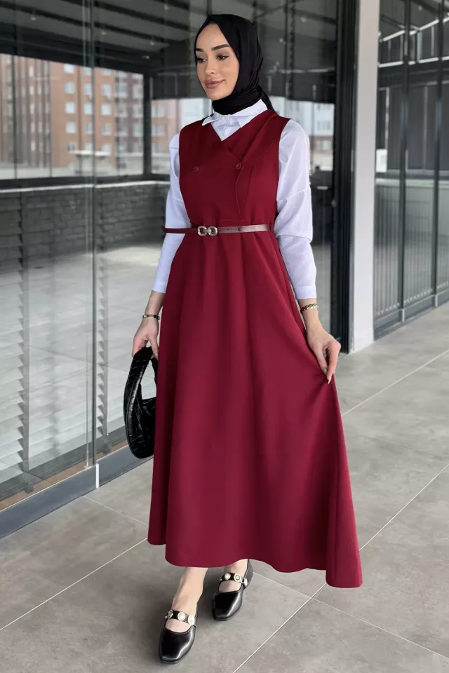 عباية بأكمام طويلة وتفاصيل لامعة ورقبة دائرية وطبقات