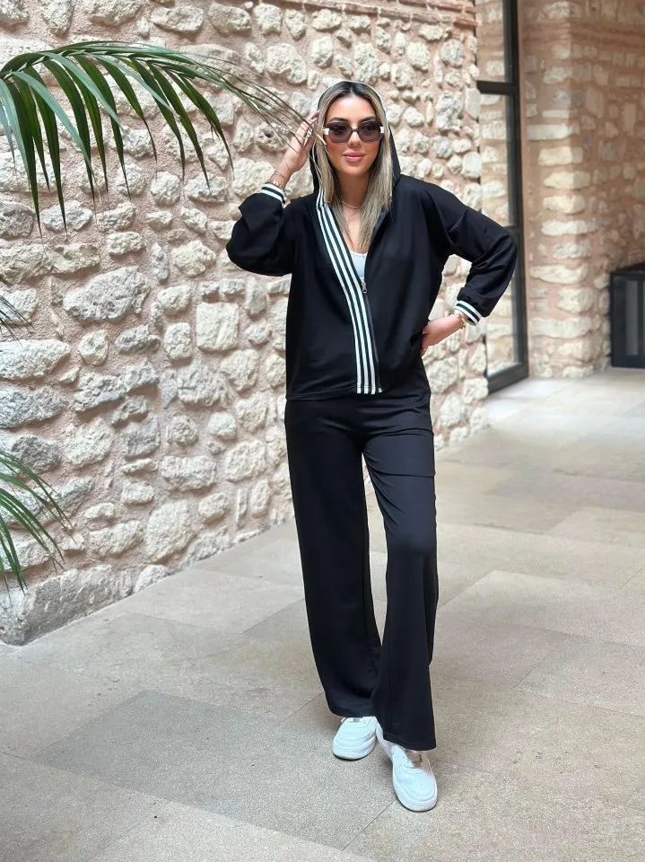 طقم بنطال نسائي مطرز بغطاء للرأس وخصر مطاطي