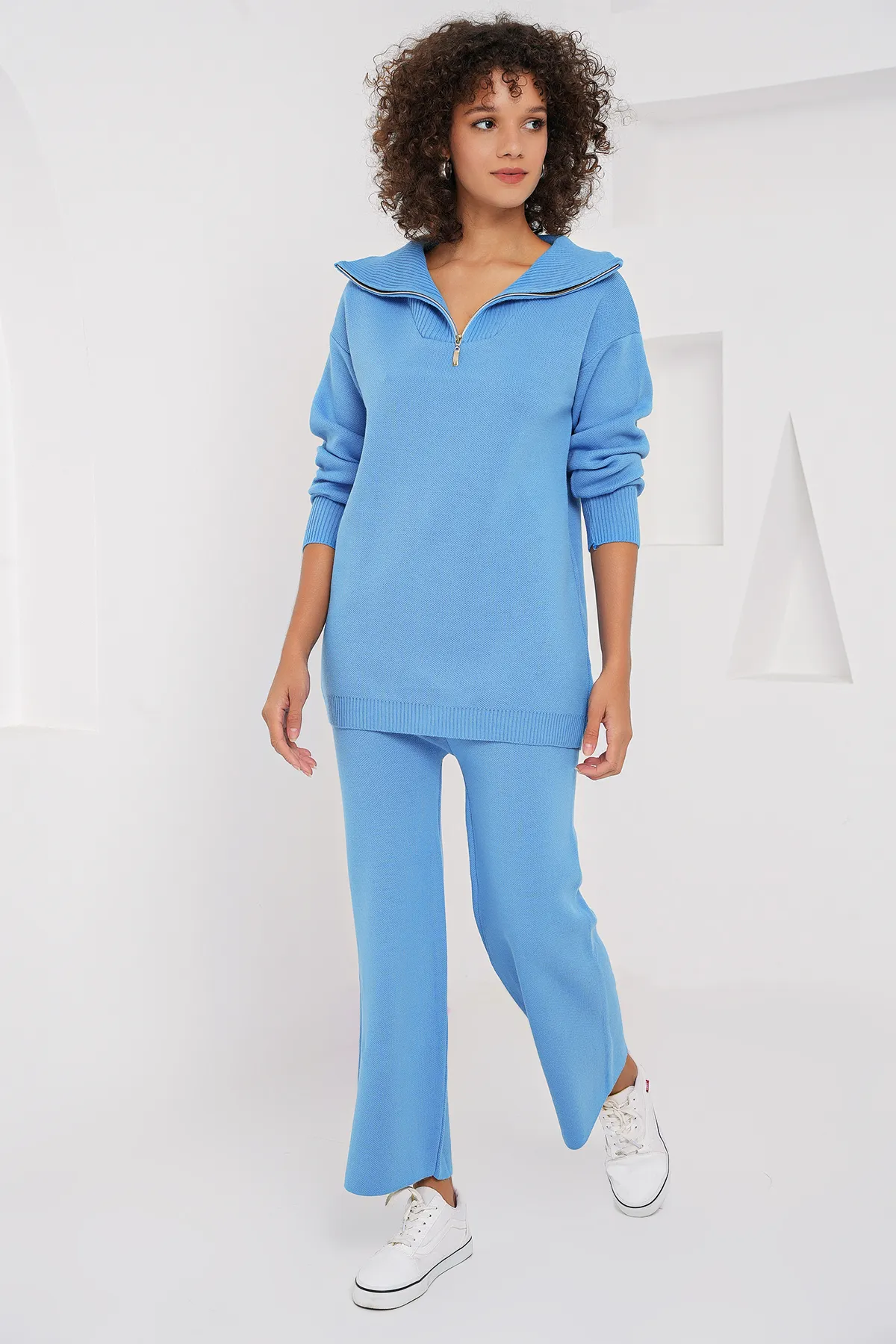 طقم فيست و بنطلون للنساء بياقة دائرية و أزرار للإغلاق