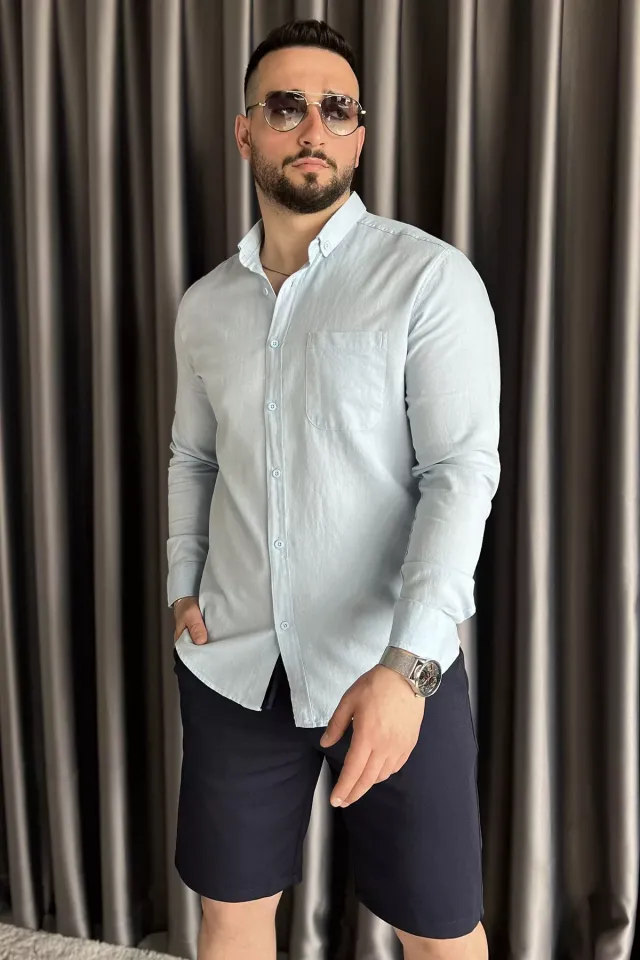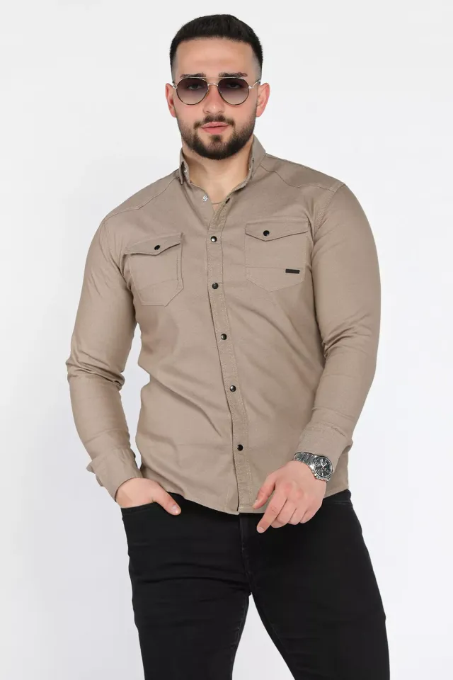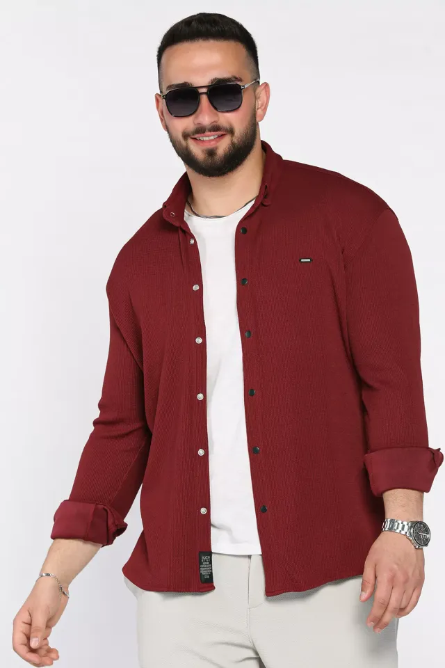 قميص رجالي أوفر سايز مبطن من المخمل بجيبين – أنيق وعملي