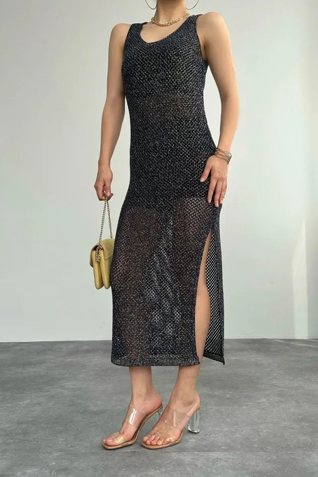 فستان قصير مضلع بياقة بسحاب وأكمام طويلة للنساء