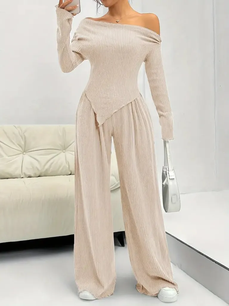 طقم بنطال ذو أكمام طويلة وياقة دائرية وأكمام طويلة مكون من 3 قطع
