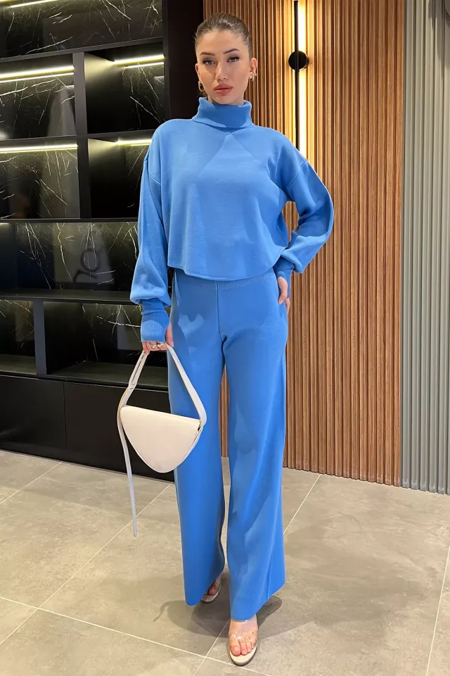 طقم بنطلون بأكمام طويلة ورقبة قميص للنساء