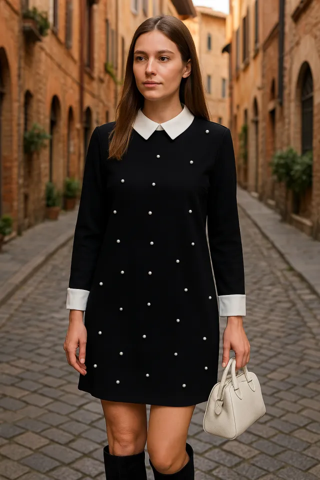فستان ميني سادة بأكمام واسعة مزمومة من الاسفل ورباط خصر للنساء