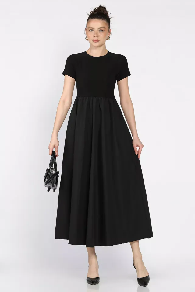 فستان ميني كاجوال بنقشة زهور وياقة دائرية وأكمام طويلة للنساء