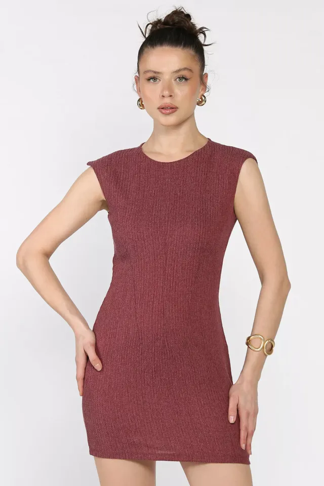 فستان ميني بنقشة مربعات بسحاب وياقة عالية وأكمام طويلة للنساء