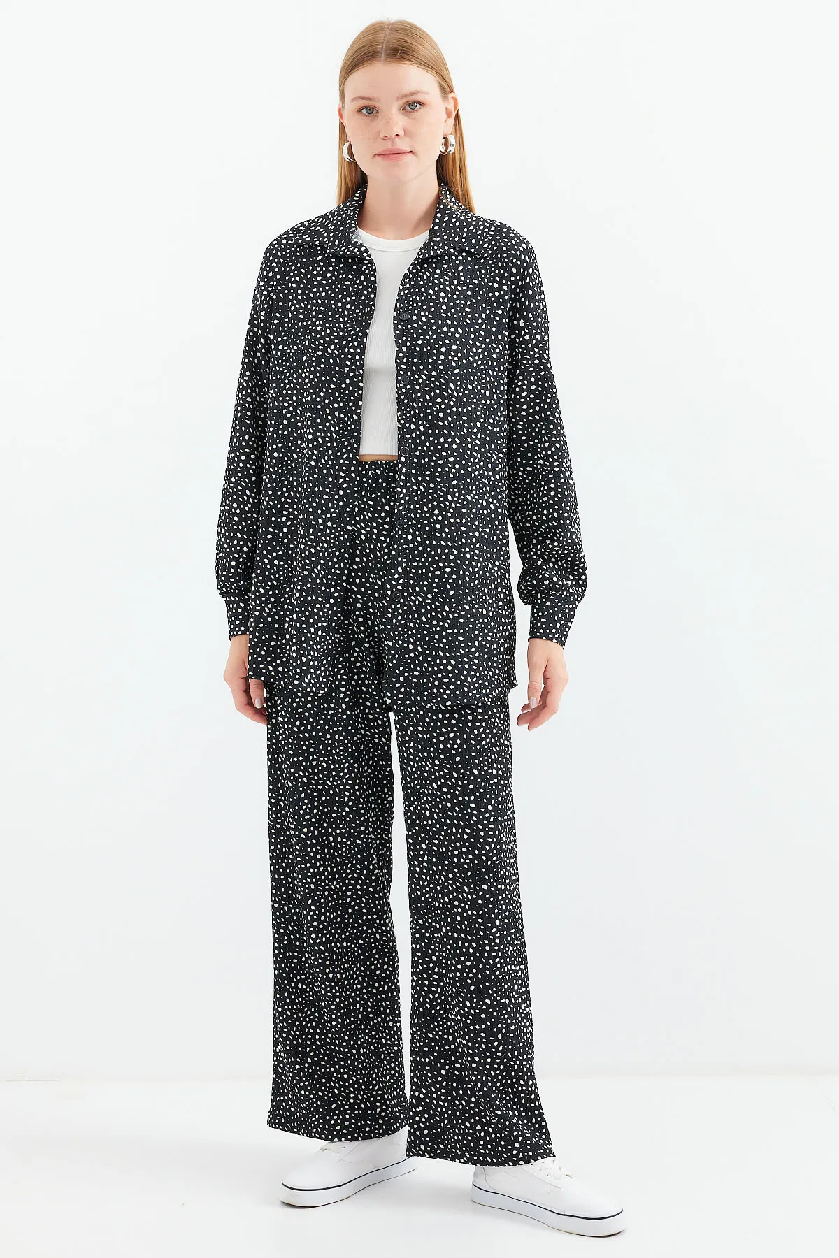 طقم بنطال سادة بأكمام طويلة وقصة ضيقة 3 قطع