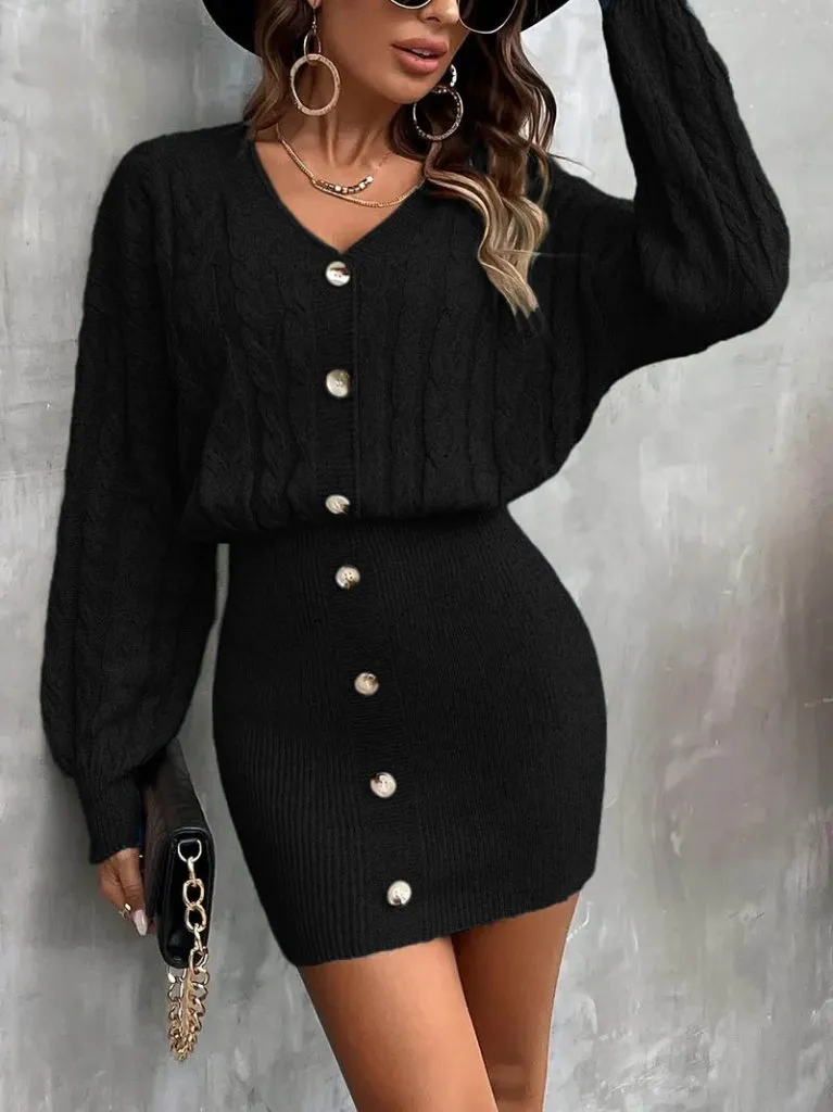 فستان قصير بياقة قميص وأكمام طويلة وتفاصيل طيات