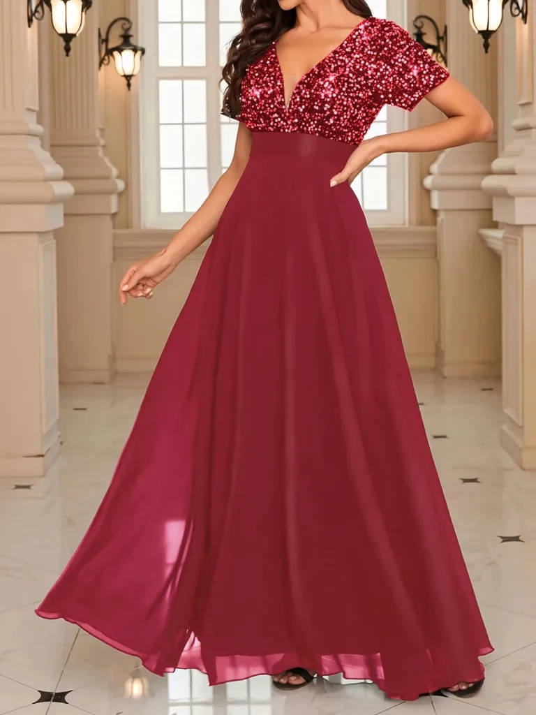 فستان قصير بأكمام شبكية وصدر مزدوج مزين بأحجار الراين للنساء