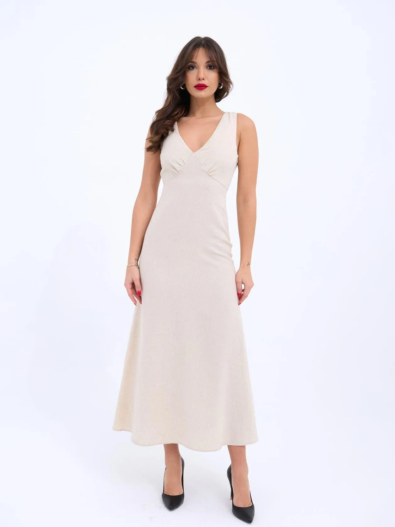 فستان ميدي مزدوج الصدر بلا أكمام بتصميم كلوش للنساء