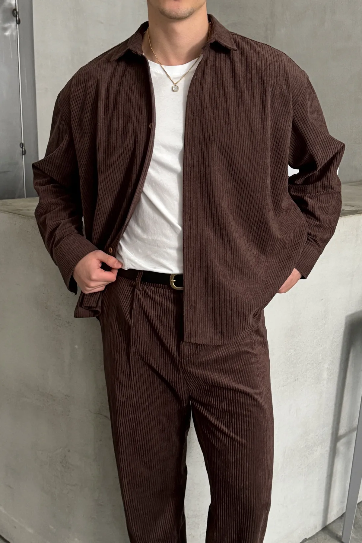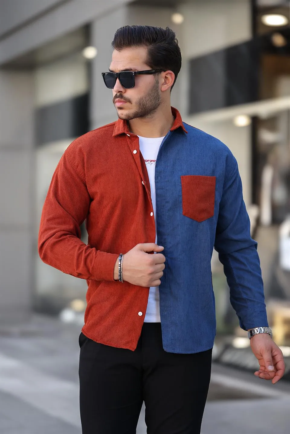 قميص كتان رجالي فضفاض بياقة بأزرار