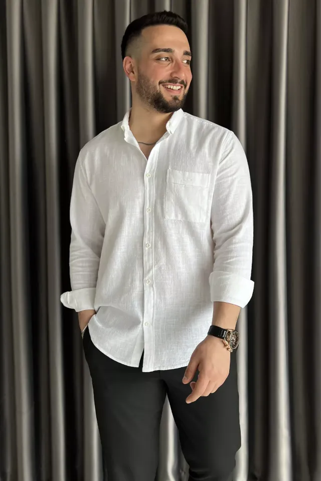قميص رجالي بأكمام طويلة وتصميم سادة
