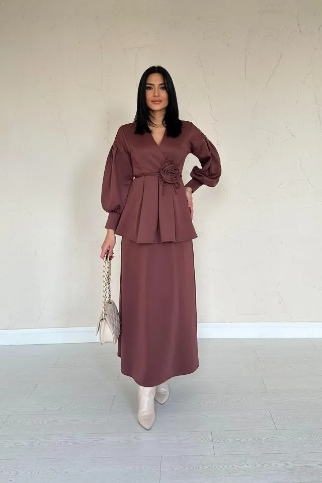 طقم تنورة بدون أكمام مع أزرار ورقبة دائرية للنساء