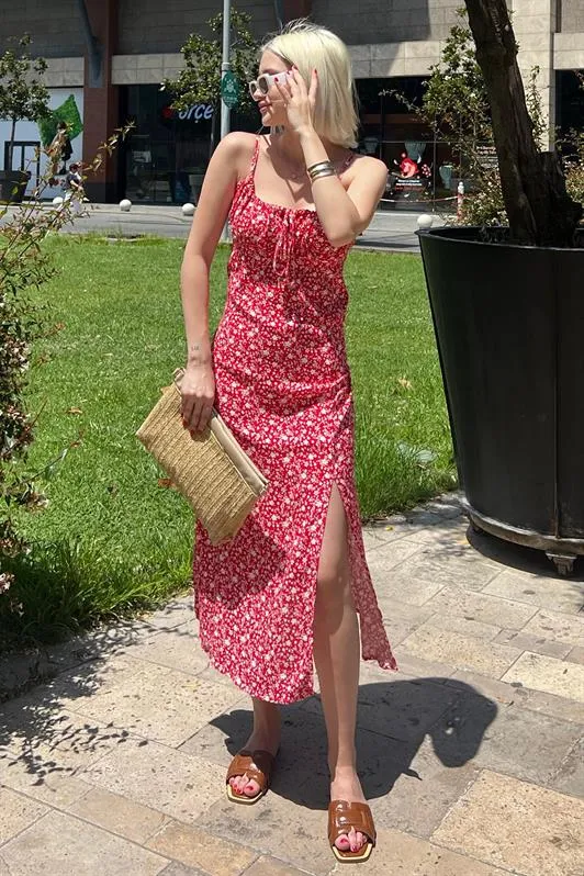 فستان ميدي بأكمام خفاش وتفاصيل كشكشة للنساء