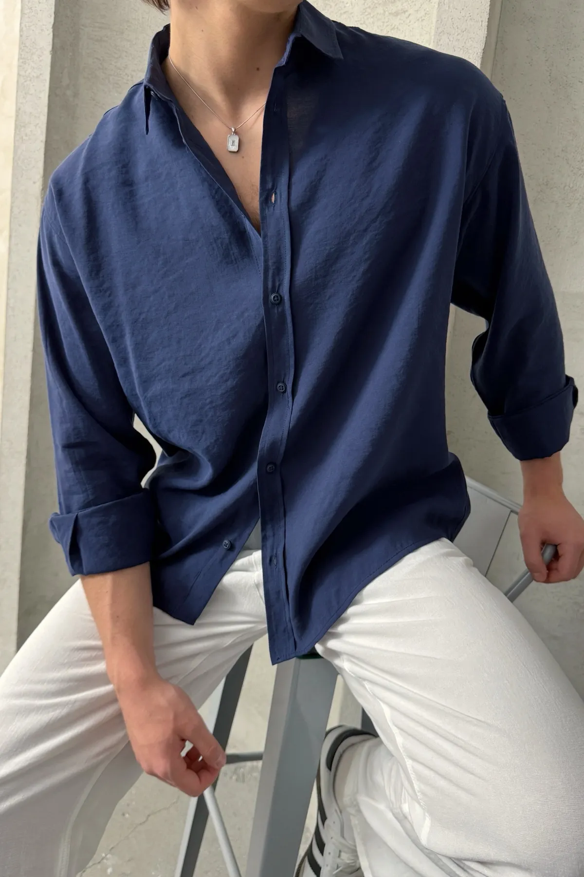 قميص رجالي سادة بأكمام طويلة وأزرار، مصنوع من 98% قطن و2% بوليستر. ناعم، يسمح بمرور الهواء، ومتين، مثالي للمناسبات الرسمية وغير الرسمية. قابل للغسل في الغسالة على درجة حرارة 30 درجة مئوية.