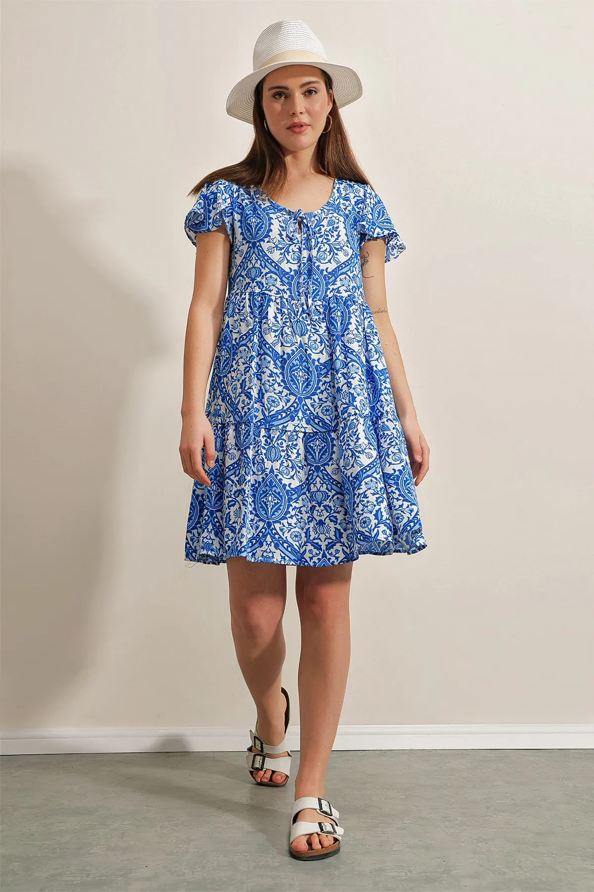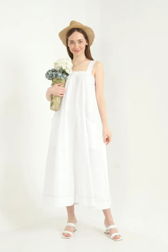 فستان نسائي ميني ضيق بياقة دائرية وتفصيل كسرات جانبية مع إبزيم، تصميم محدد بخطوط ناعمة ولمسة عصرية أنيقة.