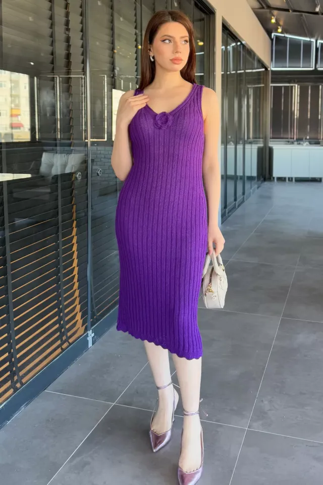 فستان نسائي ميدي منقوش بياقة قلب بحمالات رفيعة