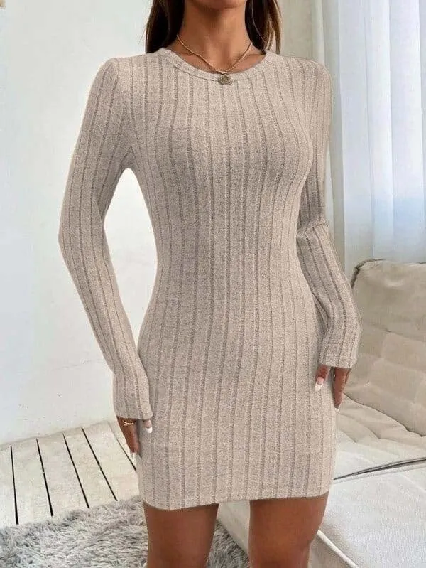 فستان ميني جينز بكسرات وياقة دائرية مع خصر بحزام، تصميم أنيق يناسب إطلالات صيفية عصرية