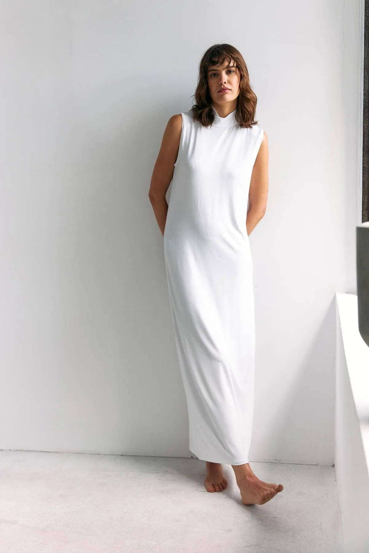 فستان ميدي محبوك بتفصيل مزموم عند الخصر وياقة V. قصة محددة تمنحك أناقة يومية بلمسة مريحة.