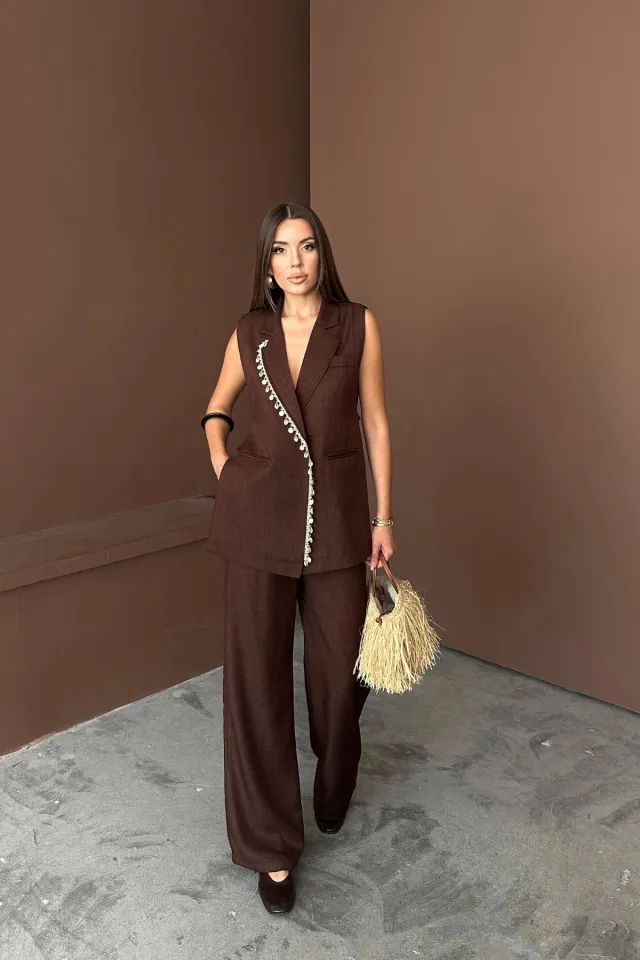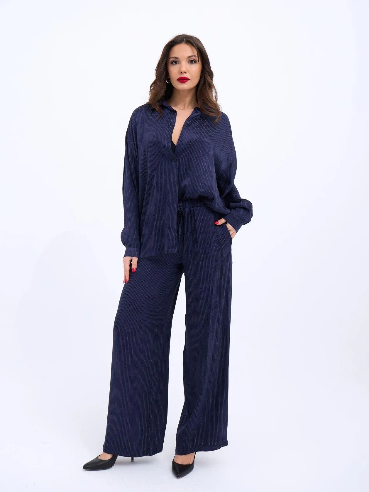 و بنطلون للنساء V طقم بلوزة بأكمام طويلة ورقبة على شكل حرف