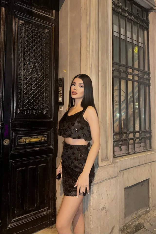 طقم بلوزة قصيرة بدون أكمام و تنورة بتفاصيل طيات للنساء