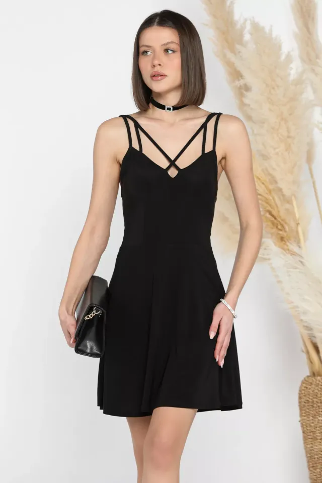 فستان ميني مزين بترتر وياقة قلب لطلات صيفية مرحة وخروجات نهارية للنساء