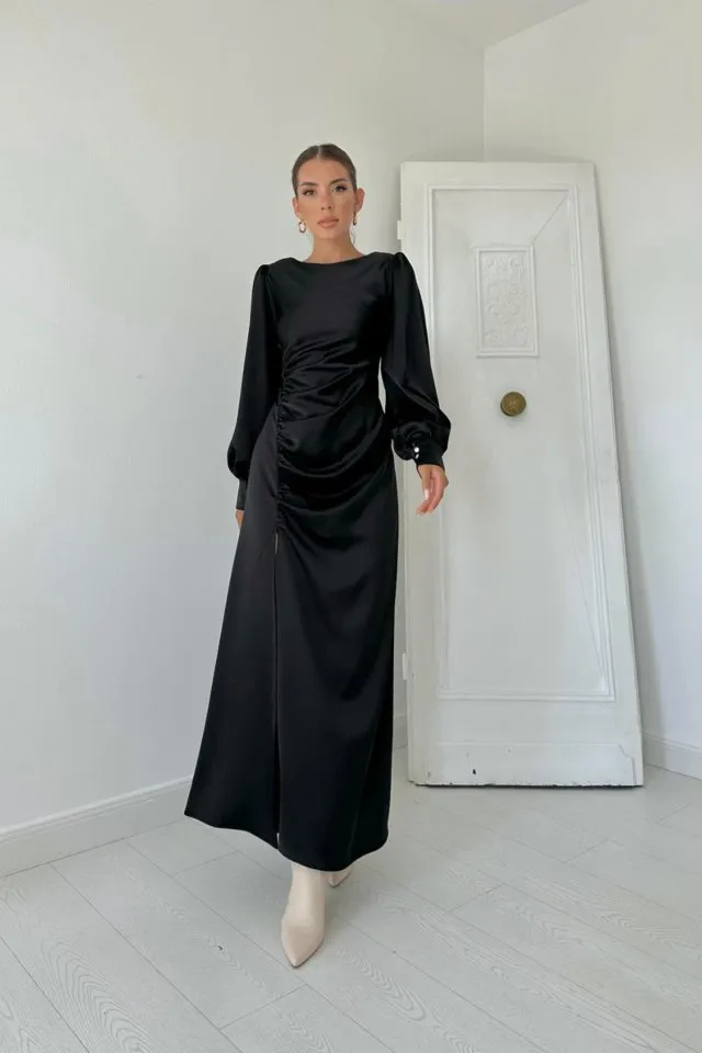 فستان ميني مزين بترتر وياقة قلب بكسرات للنساء