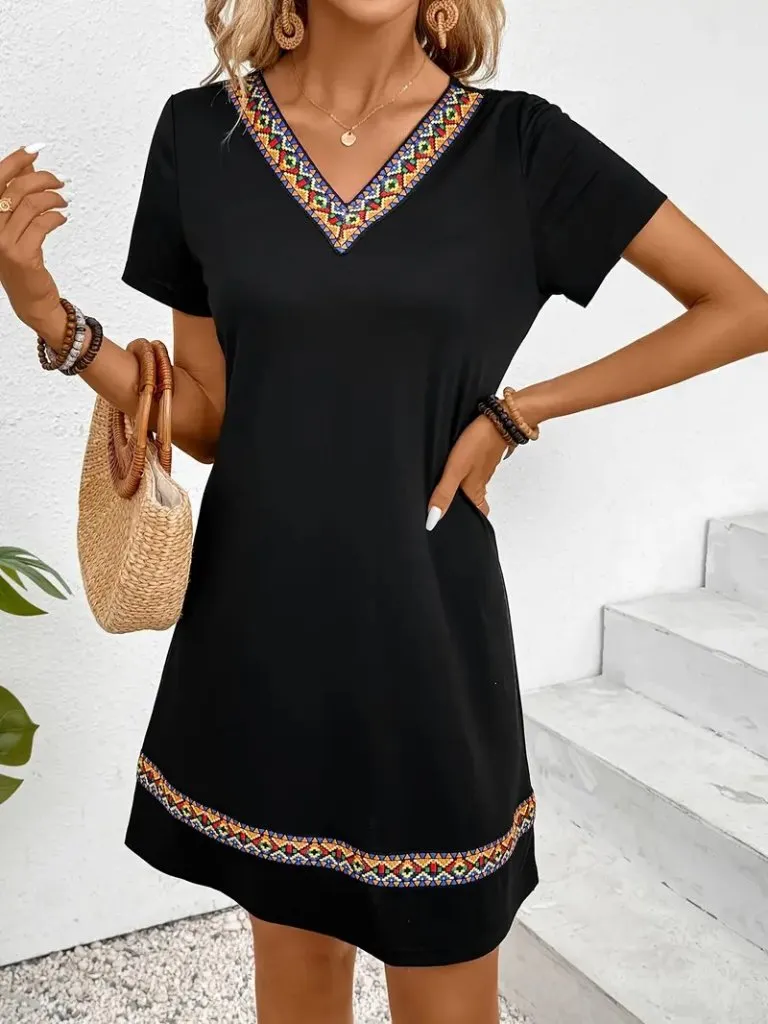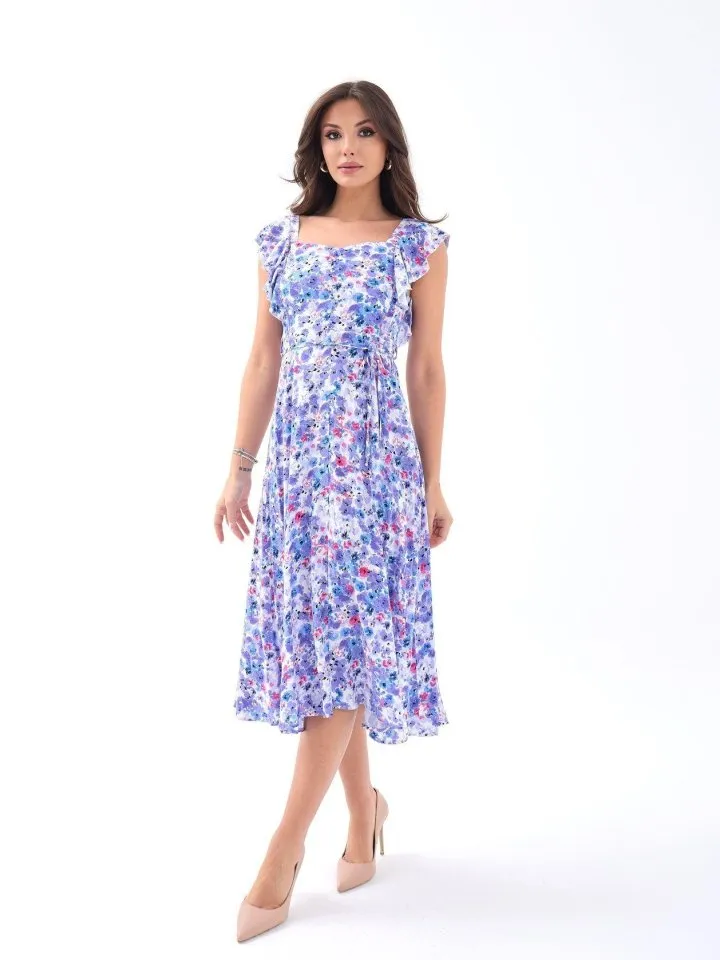 فستان قصير ضيق بدون حمالات بشق عند الفخذ ونقشة زهور متعددة الألوان، إطلالة أنثوية جريئة لأيام الصيف.