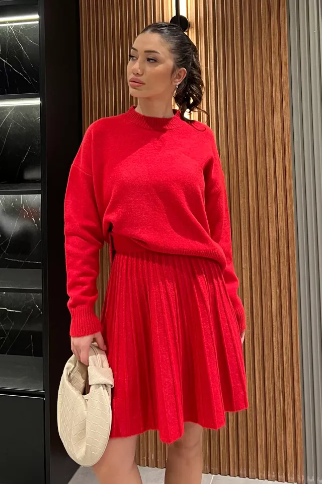 طقم تنورة بتفاصيل شق و بلوزة قصيرة بحمالات رفيعة و تفاصيل عقدة للنساء