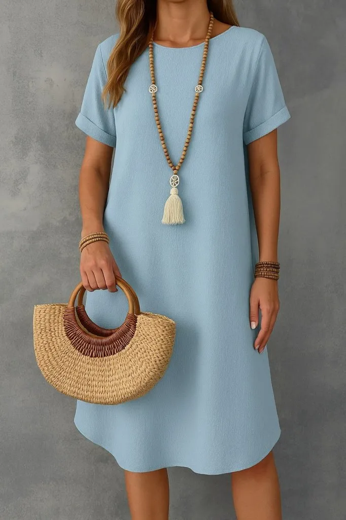 فستان نسائي جينز بياقة على شكل قلب بدون اكمام وتنورة كلوش مزمومة بكسرات، تصميم عملي لاطلالات صيفية يومية.