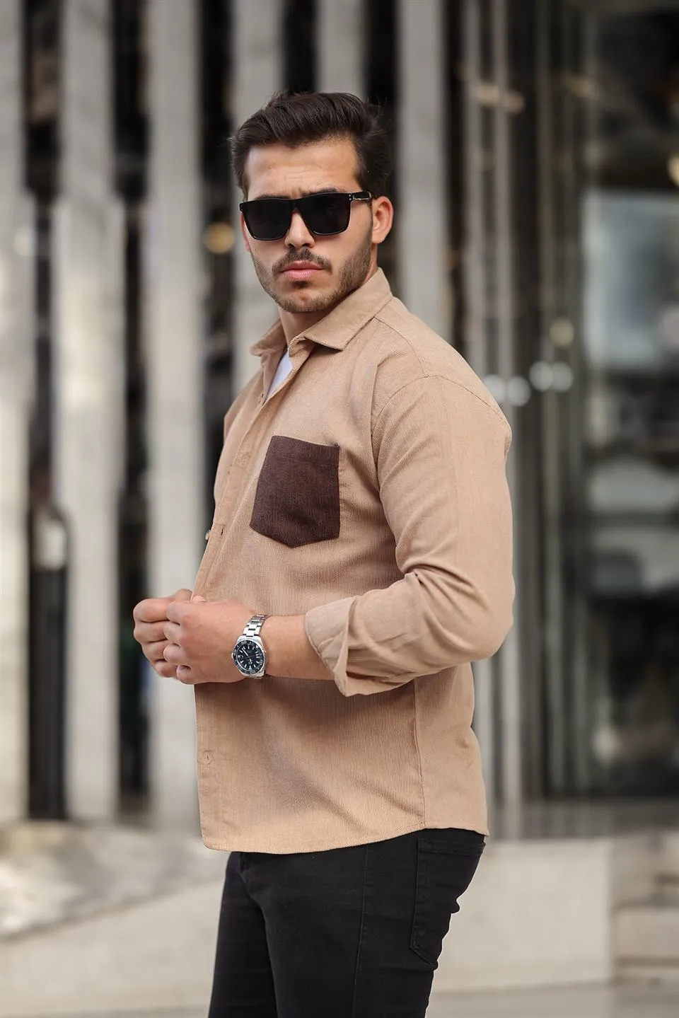 قميص قطني بأكمام طويلة وياقة كلاسيكية للرجال، مصنوع من القطن ١٠٠٪. ناعم، يسمح بمرور الهواء، ومثالي للارتداء اليومي. سهل العناية، ويمكن غسله في الغسالة على درجة حرارة ٣٠ درجة مئوية.