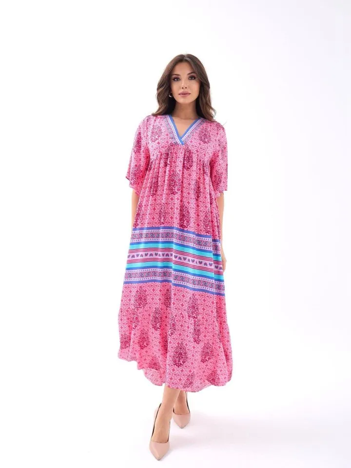 فستان ماكسي بوهيمي مكشوف الأكتاف مع كشكش وشق جانبي، مثالي للحركة الخفيفة والتنسيق اليومي المريح.