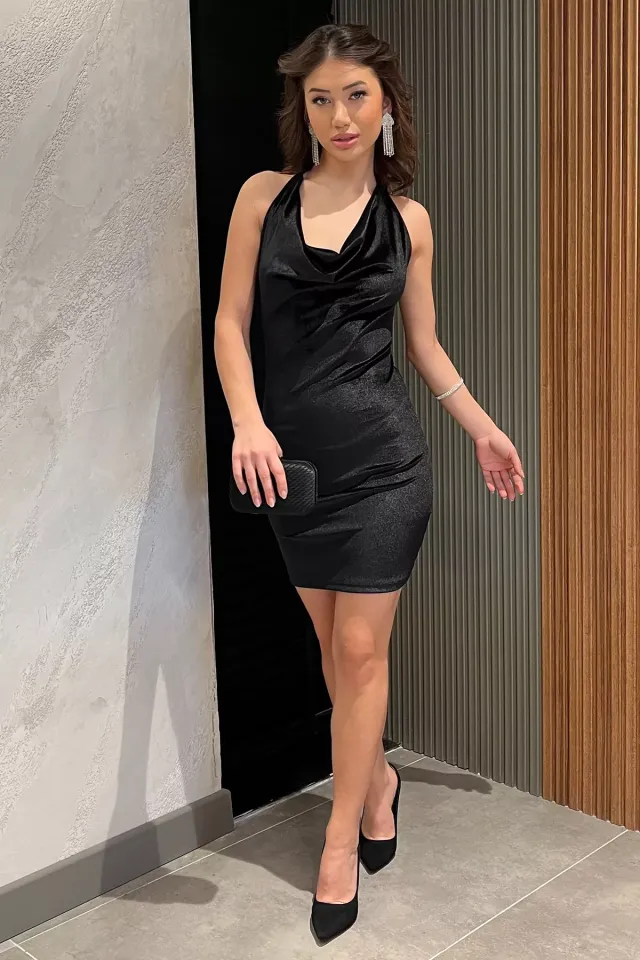 فستان سهرة نسائي ماكسي بترتر لامع وتفصيلة حورية واكتاف متعددة الحمالات