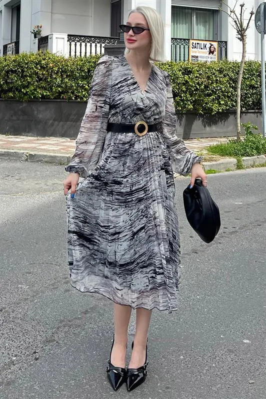فستان ميني جلد صناعي برباط جانبي قابل للتعديل وأزرار مزدوجة أمامية للنساء