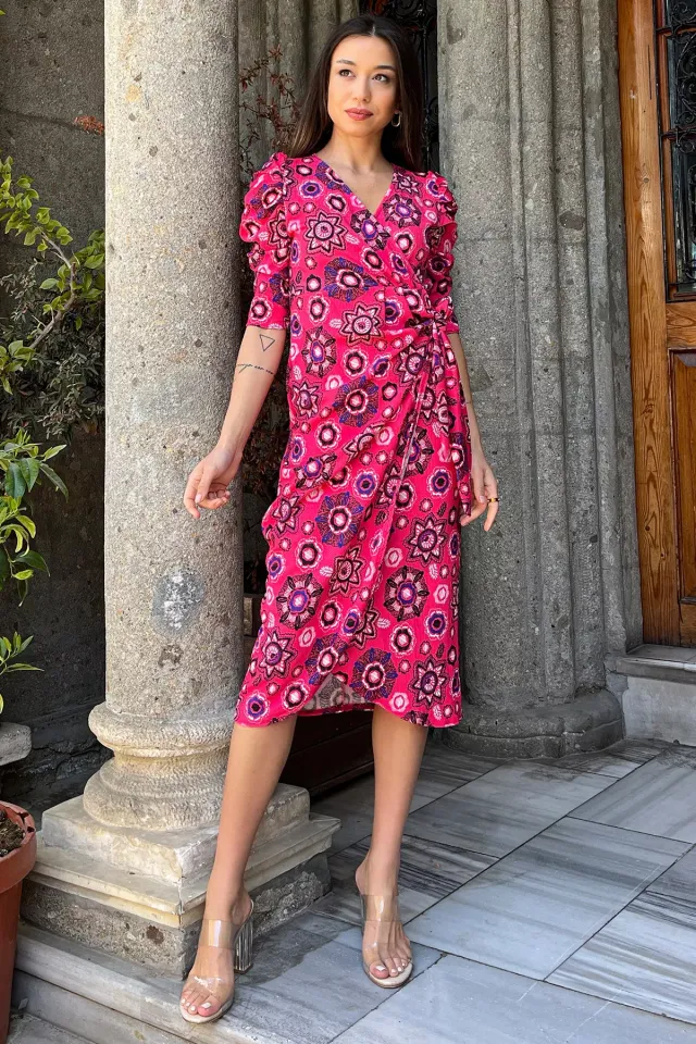 فستان ميدي من قماش السويد الناعم بياقة نصف مرتفعة، بتصميم ناعم يبرز جمال القَصة بخامة أنيقة.