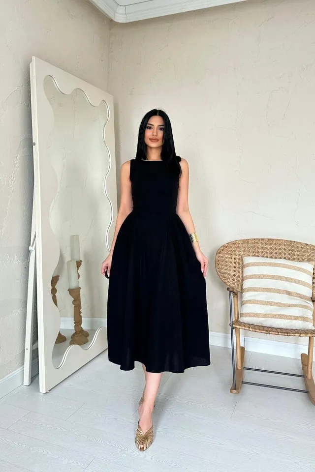 فستان ماكسي دانتيل ضيق بياقة دائرية وبدون أكمام، مثالي للحركة الانسيابية والإطلالات الموسمية الراقية.